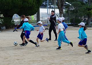 2時間目、愛媛FCレディースの丸山ちさと選手、毛利美佑選手が翠小学校に来てくださり、サッカーの楽しさを教えてくださいました。
